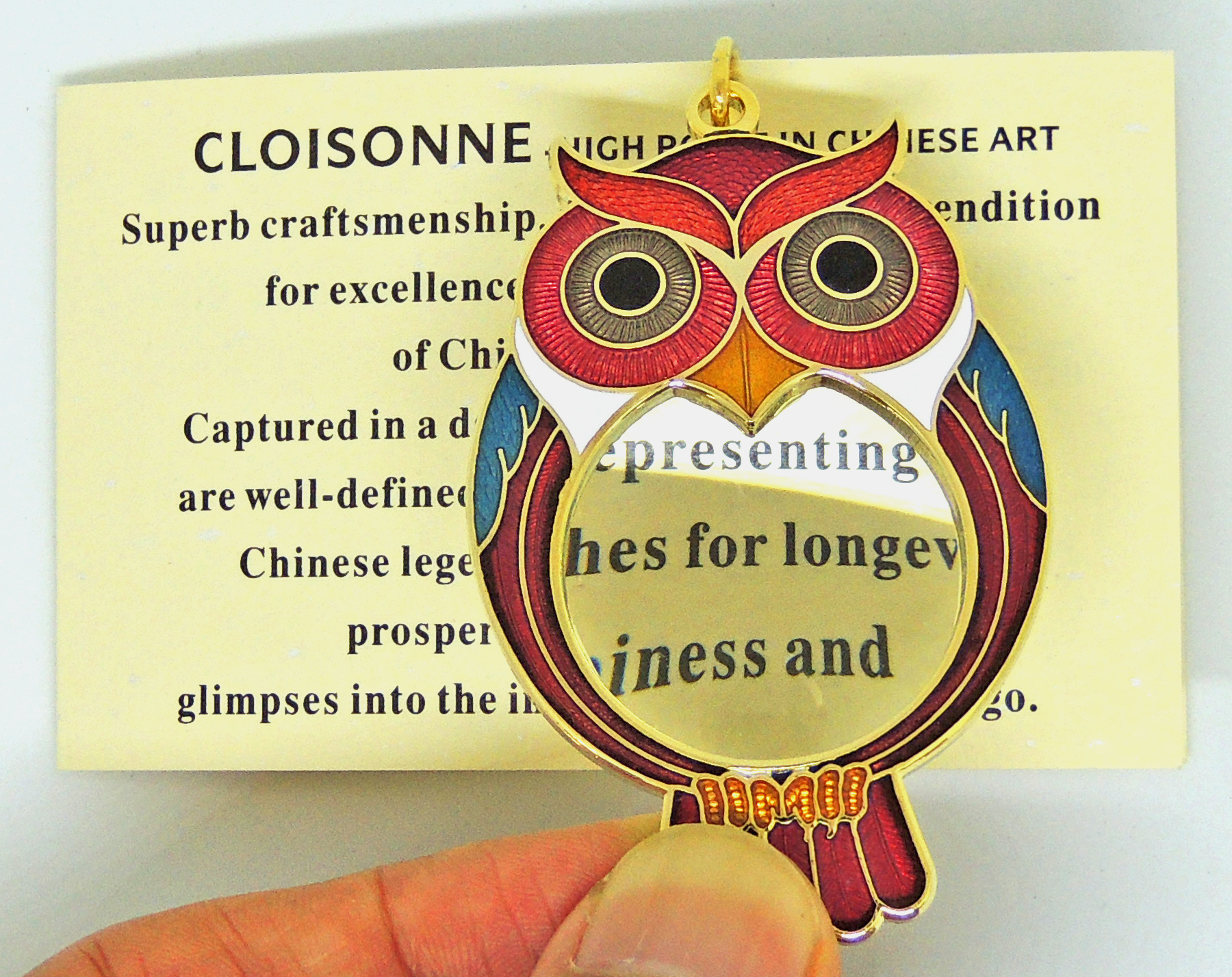 The size of cloisonne owl pattern : 6.5 (length) * 4 (width) * 0.5 (thickness) cm